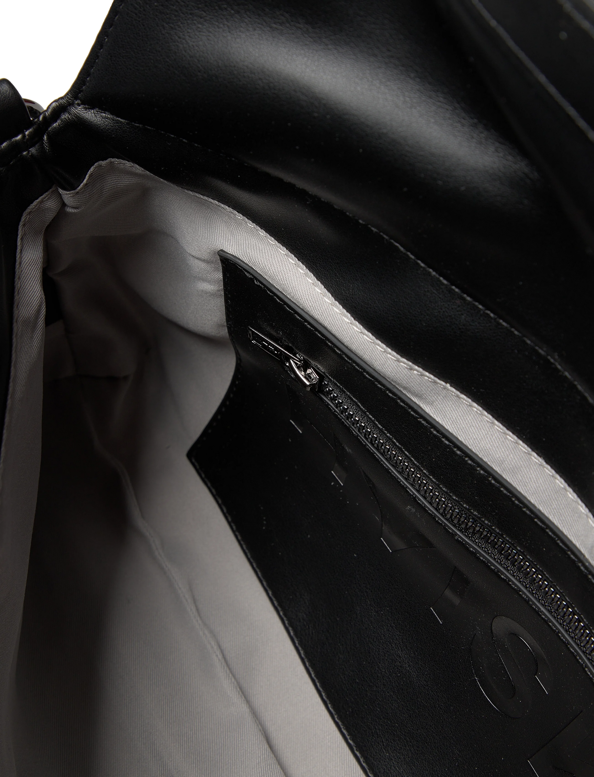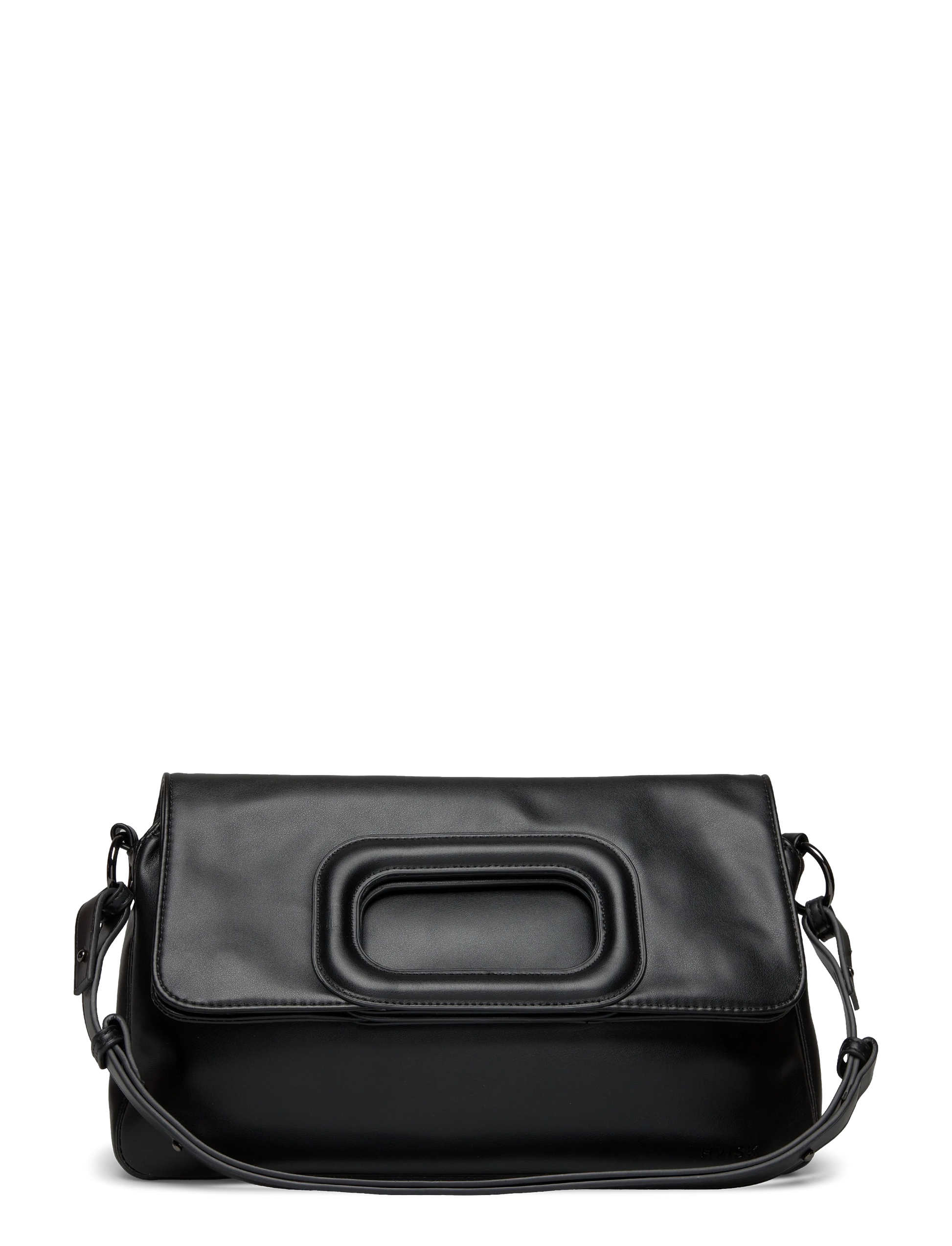 Multifunctional bag with adjustable strap, inner zipper pocket, two flaps with magnetic snap buttons to close the bag and integrated buckle handles. The bag can be worn on the shoulder, as a handbag, as crossbody and as a clutch.
