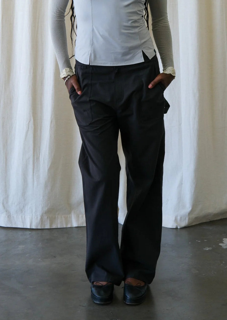 Introducing the Everything Pant - a versatile, low rise black trouser perfect for everyday wear. Crafted with a hidden invisible zipper and metal hook and bar closure, these pants combine style and functionality. Complete with front and back pockets for added convenience.