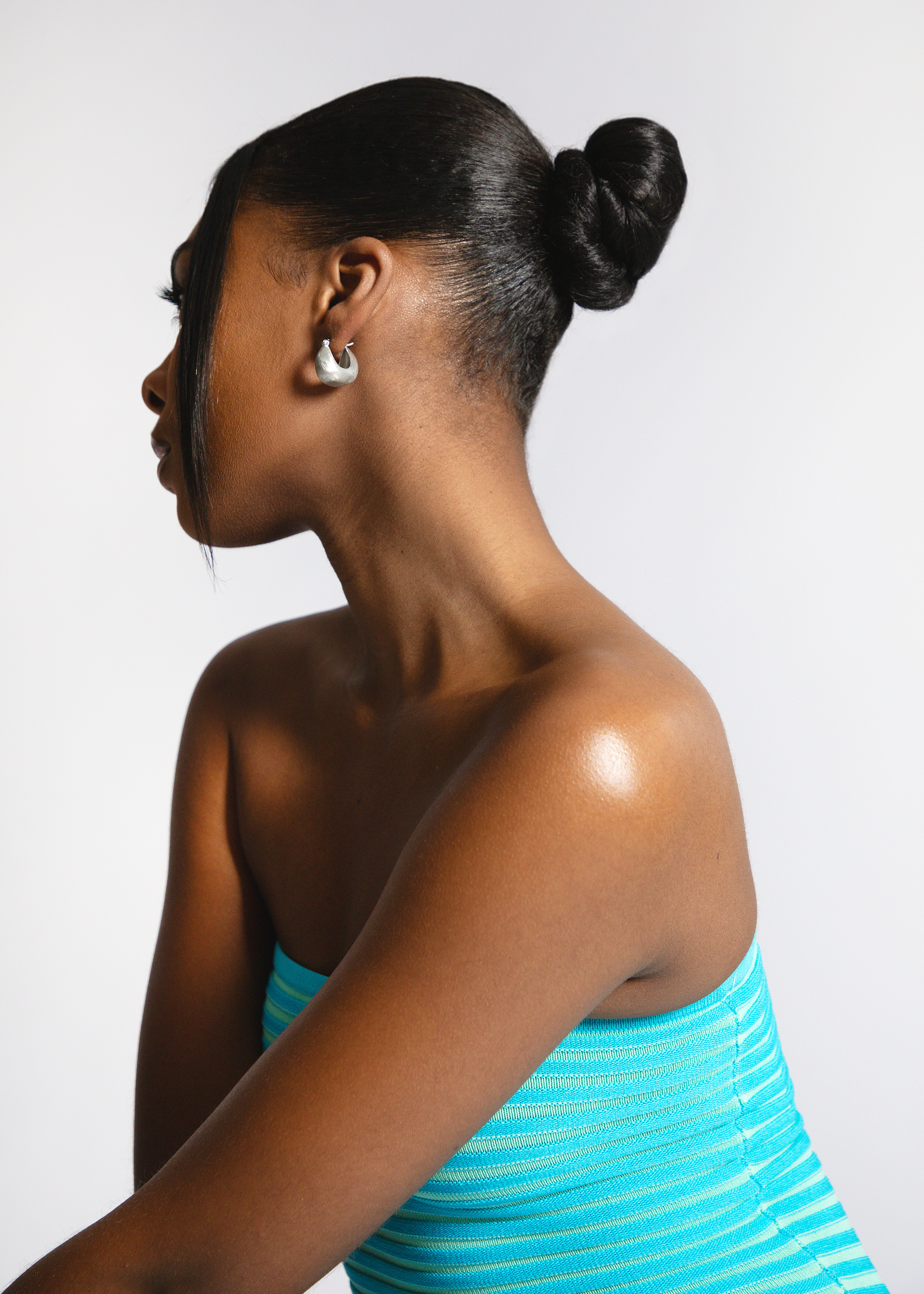 Elevate your style with the elegant Magda Earring in Silver. Crafted with a brushed finish and 18K gold plating, these 1.6" diameter earrings are a perfect addition to any outfit. Opt for the sleek silver option with rhodium plating for a polished look.
